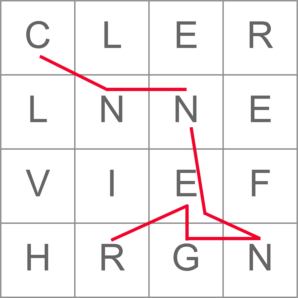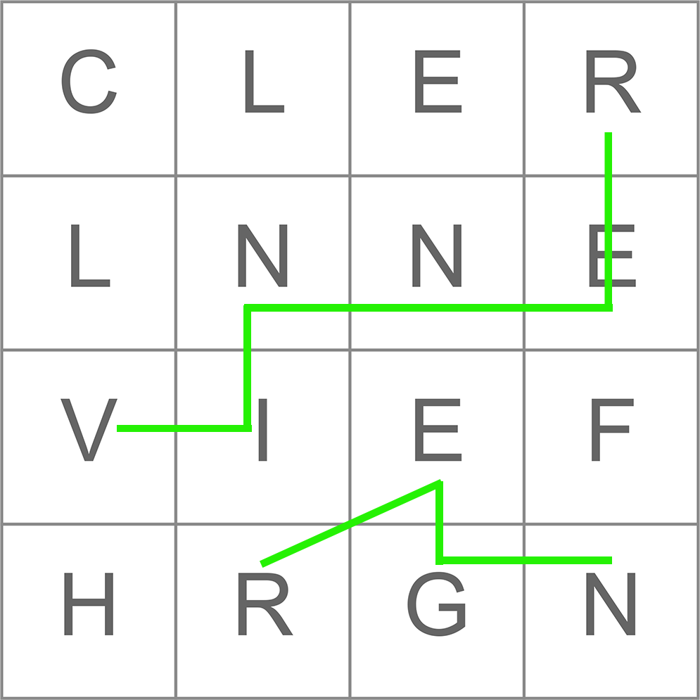 Tillåtna ord som kan hittas med sammanlänkade bokstäver: VINNER och REGN