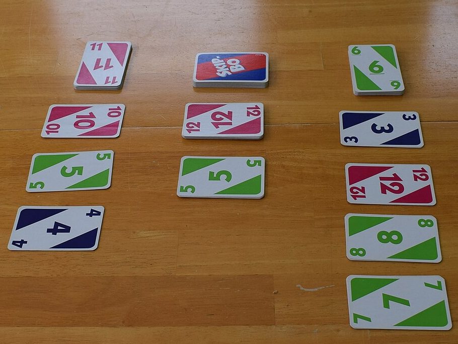 När en bygghög nått upp i 12 (dam om ni kör med kortlek) så är den komplett och läggs åt sidan vilket skapar utrymme för en ny bygghög.